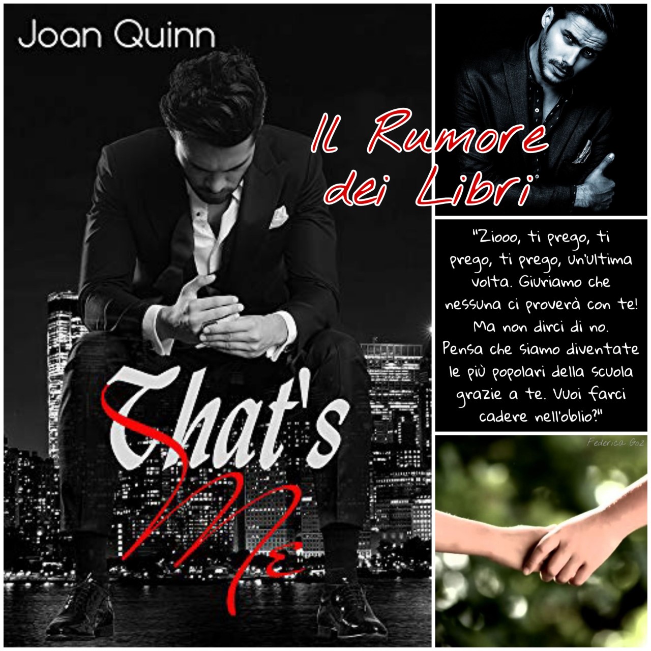 Lo stesso è accaduto per That’s Me di Joan Quinn, non conosco l’autrice, ho scoperto essere questo il suo primo romanzo e, per essere alle prime armi direi che è venuta fuori col botto.